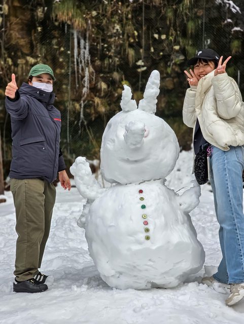 有人正在堆雪人,還熱情回應