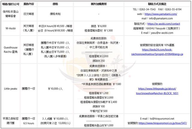 1.信州松本登山嚮導協會 <—僅日文導遊
