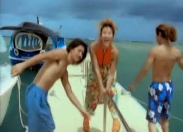 李玟旁邊的藍色船