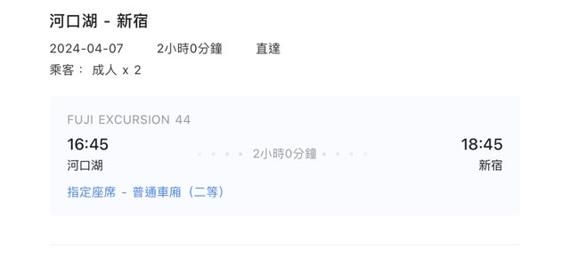 標題[讓售] 4/7 河口湖-新宿 富士回遊 單程兩張