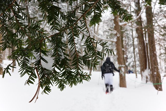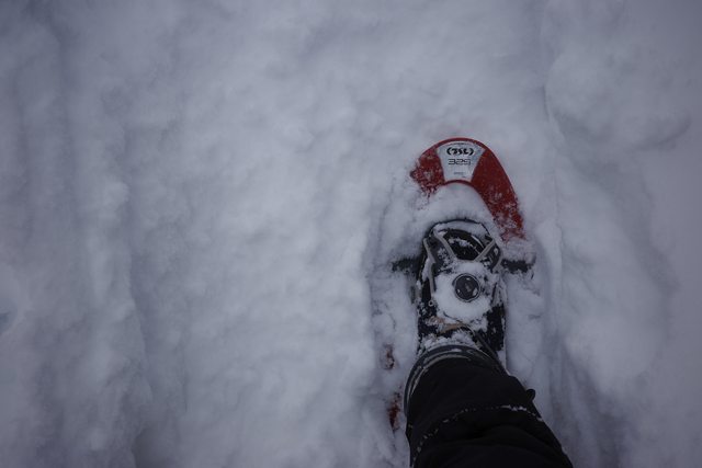 雪鞋健行中,因為積雪很厚,雪地健行比想像中還需要體力,