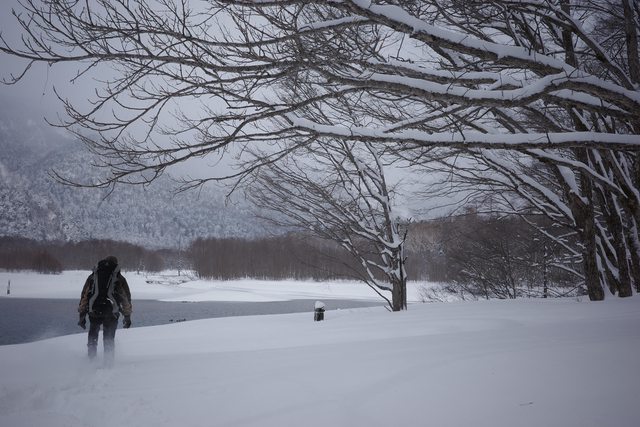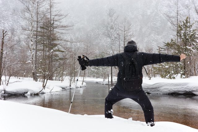 因爲冬季封山,很少遊客,想一覽冬天的上高地就只能以雪地健行的方式前往。