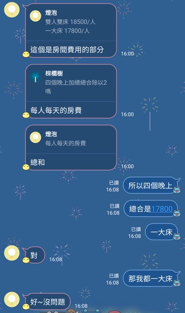 四個晚上17000 沒錯啊 每個人
