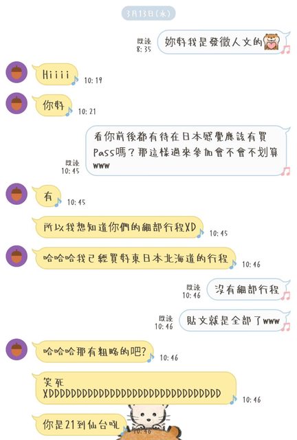 我:安啦我看她回話就知道她會是個好旅伴、最差最差也不會雷