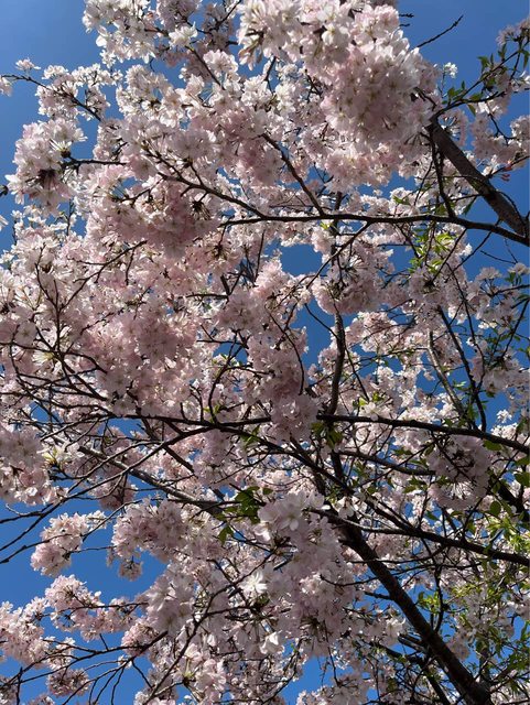 河邊的櫻花幾乎滿開,幾棵還吹雪了