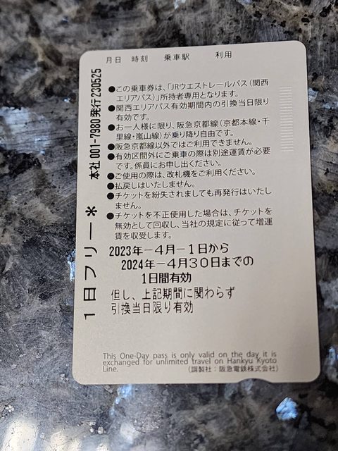 標題[讓售] 阪急京都線1日乘車券