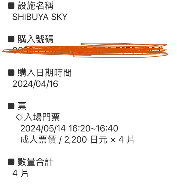 標題[讓售] 東京shibuya sky 5/14近傍晚的門票*4