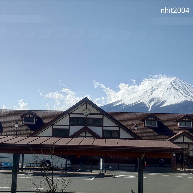 - 攝於當時住的民宿,清晨起床,發覺到山頭覆雪的富士山如此靠近!