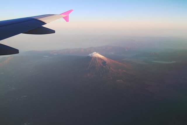 日出中的赤富士 / 紅富士 , 不容易見到跟遇見 ; 能在飛機上
