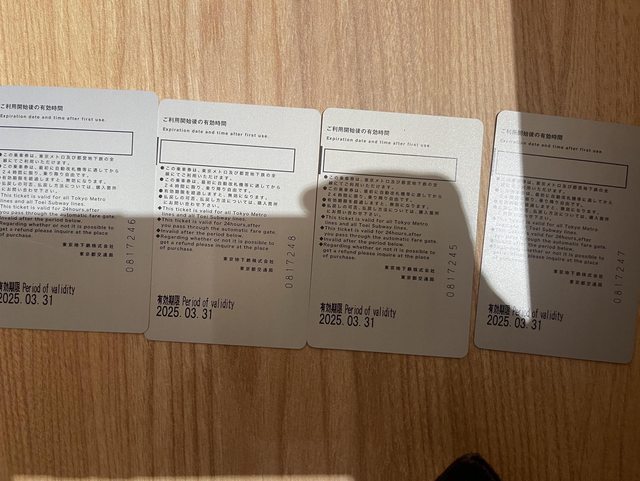 標題[讓售] 實體東京地鐵24小時一日券 4張