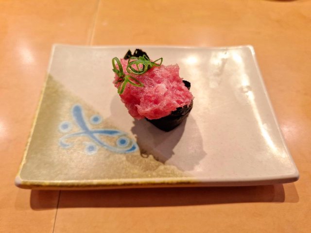 首先會招待一盤ネギトロ(蔥花鮪魚捲) 好吃