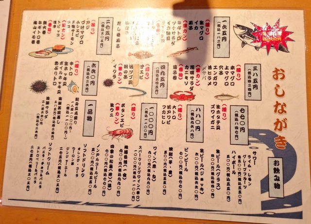 桌上有菜單 牆上也有當天限定的一些漁獲 填好單子交給師傅點餐即可