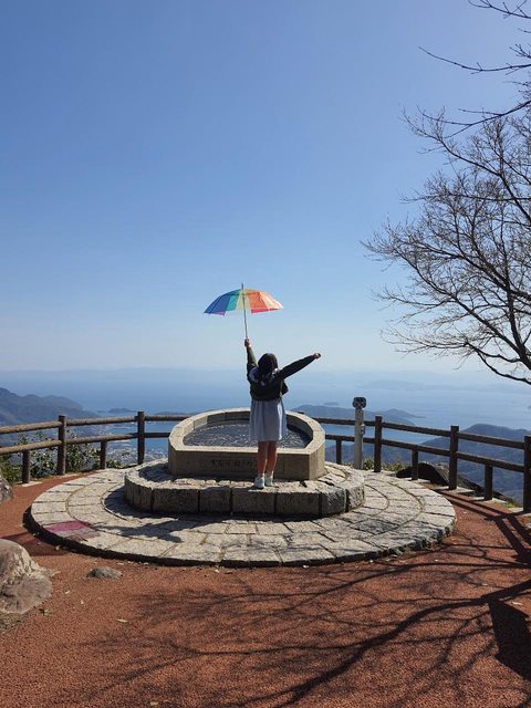 禿禿沒有楓葉好寂寥的山頂風光。還好瀨戶內海沒有讓人失望,只是艷陽高照好難拍就是