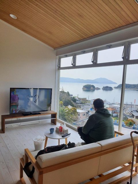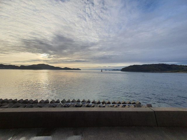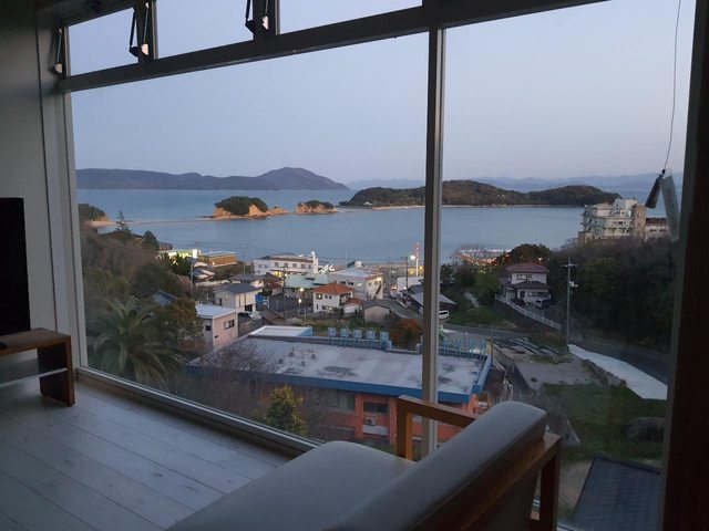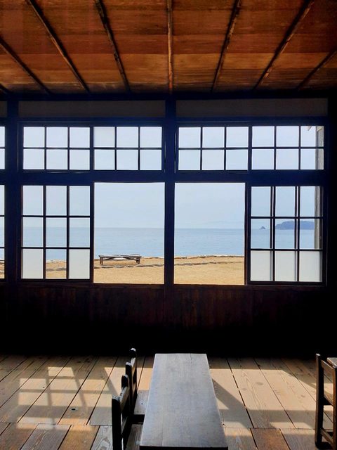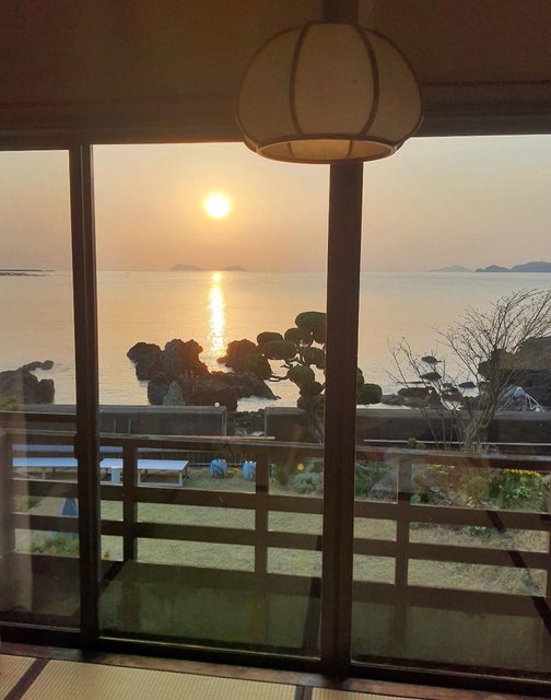 僻漁村的河豚料亭旅館房間可以直接看到日出,一整晚聽著海浪的聲音入睡覺得很幸福。
