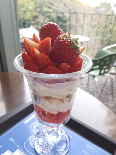 參道上很幸運看見滿開的櫻花,也吃上了一杯神椿貴貴但很美麗的草莓聖代。