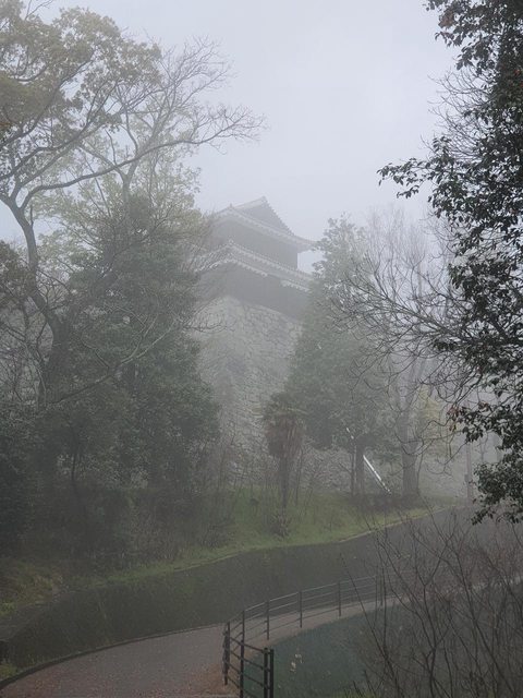 一上山發現整個城籠罩在霧氣中很是夢幻,往天守閣方向走去,遠眺整個城市開始晴朗起