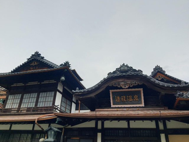 今天是行程唯一下雨的一天,還是大雨,但雨中的道後溫泉本館雖然維修中但已經拆了外