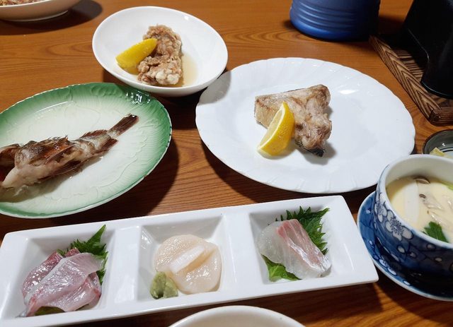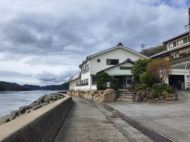 暴雨中,最後抵達了伯方島上小漁村的料理旅館,吃了一頓滿滿都是海鮮的晚餐,當然一