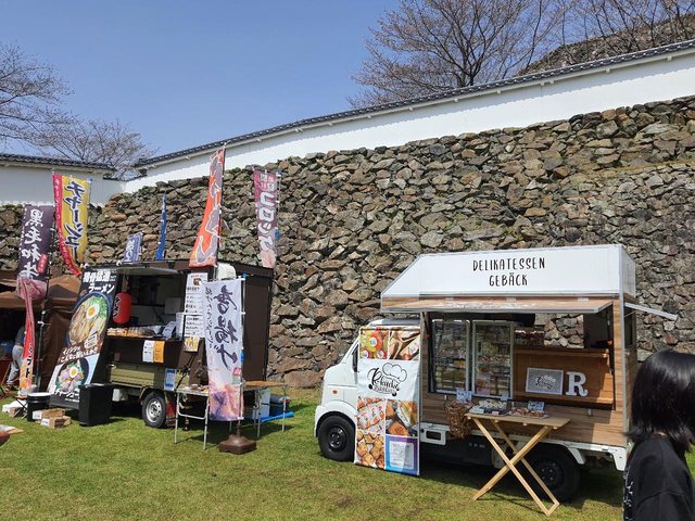 很幸運的也遇上城下櫻花季的活動,餐車小攤位擺了幾個,賣拉麵的燒鳥的水果鮮奶油三