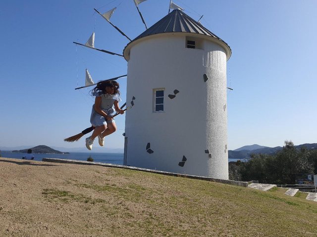 著研究掃把怎麼騎,連拍怎麼拍。體力不好的我的孩子費了九牛二虎之力,才終於讓媽媽