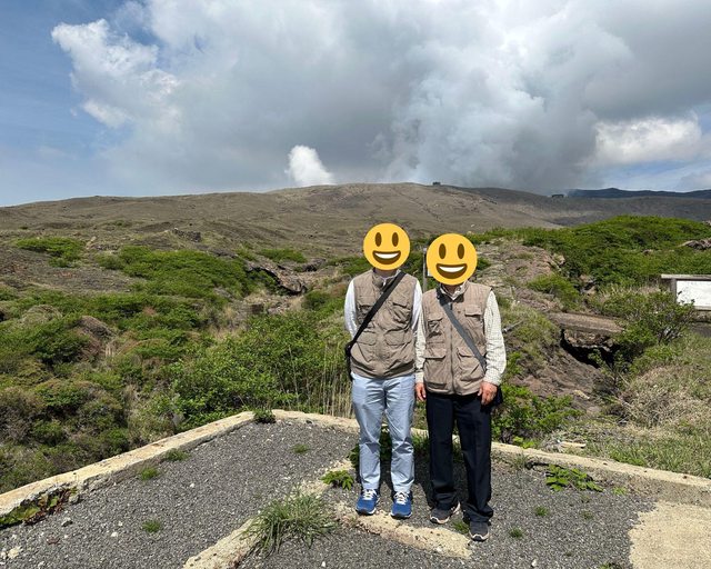 本來今天天氣很好,很期待看到火口,但在停車場上了接駁巴士後卻沒動,.