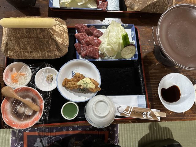 然後到高千穗峽附近吃阿蘇赤牛烤肉套餐,覺得肉烤熟一點比較好吃,還是茶沒有水,