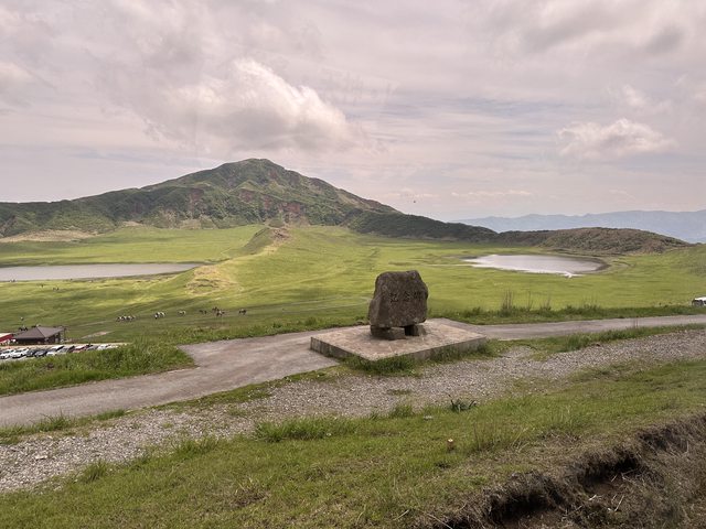 因為是黃金周,草千里到火山口停車場的路上一路塞車