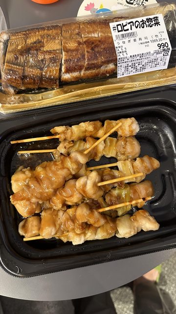 一個PIZZA+10串雞肉+鰻魚米糕?+優格+水,台幣500有找