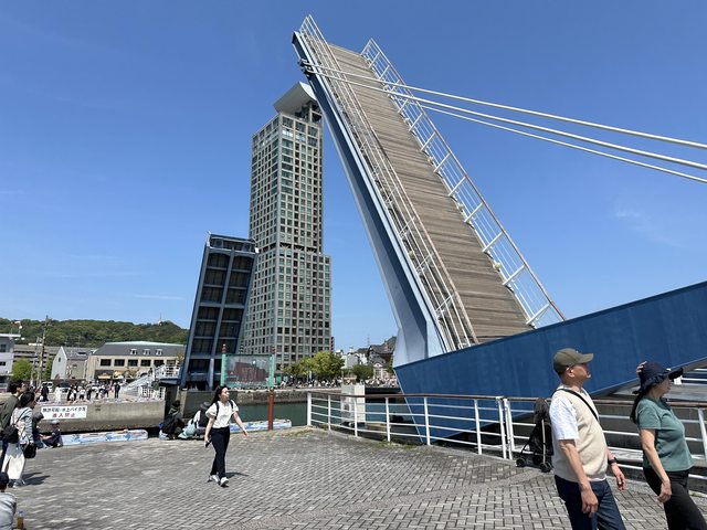 1340發的車 回到門司港後剛好可以看整點的藍翼橋升降