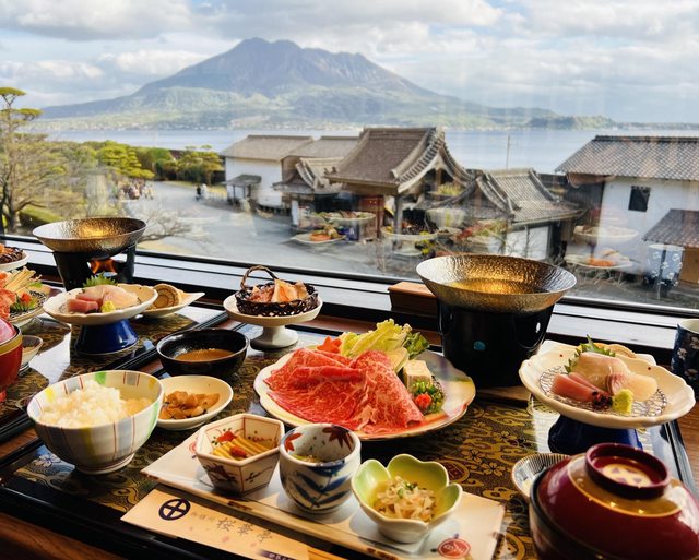 鹿兒島仙巖園內的餐廳,風景真的好棒,餐點雖然不便宜但味道不錯!當天去的時候天空超級漂亮,看著美景吃飯真的很chill