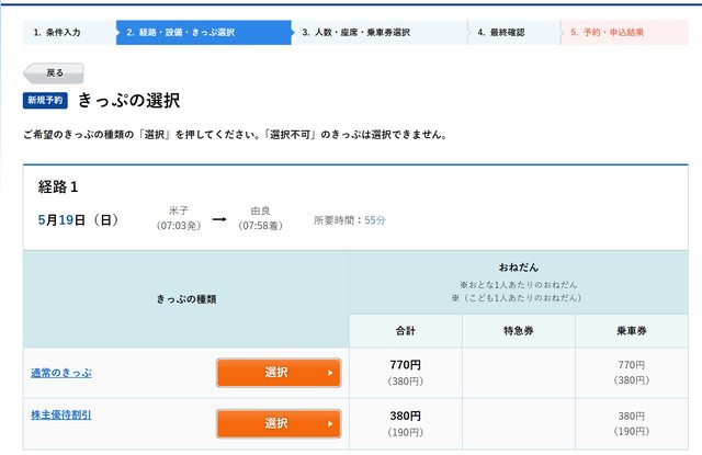 以岡山到由良的乘車券為例