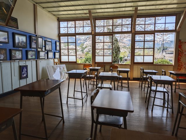 遊記日期:2024.4.13 (六) 舊上岡小學校 位於茨城縣大子町 可從常陸大子JR站附近的觀光中心租借腳踏車前往 只有假日才有開放校舍內部 免費入場 是一些日劇和動畫的取景地 可隨意捐款幫助維護校舍 現場有志工幫忙導覽解說 全部是木造的校舍 1879年創立 2001年閉校 也有一百多年的歷史了 中午去人還不多 可以好好地拍到校舍內的空景 感受安靜的氣氛 仿佛穿越時空的錯覺 好想再回到小學的生活啊! 這次來的時候剛好櫻花盛開 拍起來更好看 可惜這裡已經不存在少女與戰車的周邊痕跡了 只剩下建物背景 還有一些地方變成禁止進入了 只能從外面拍 已登錄有形文化財