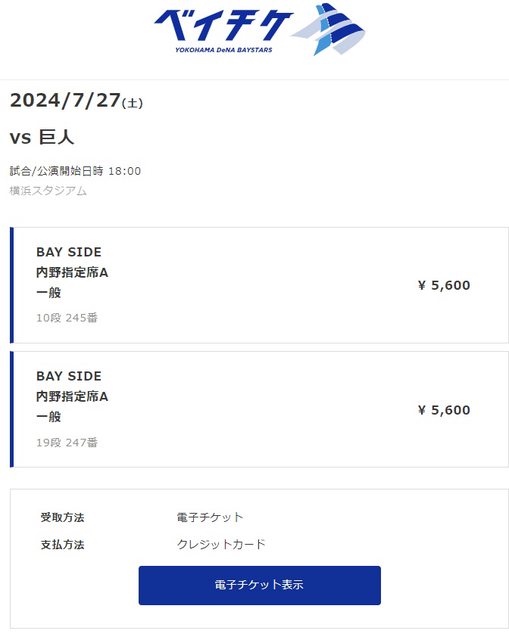7/27 巨人 v.s 橫濱 橫濱球場內野門票指定席A兩張