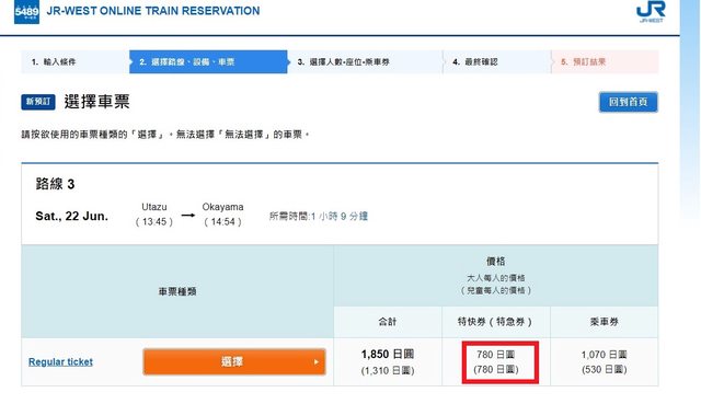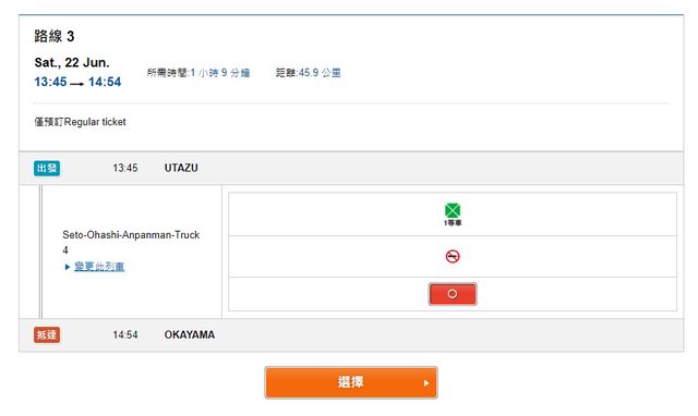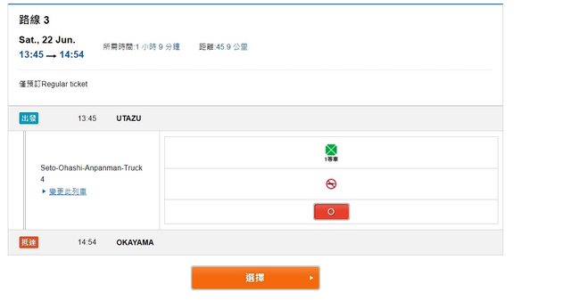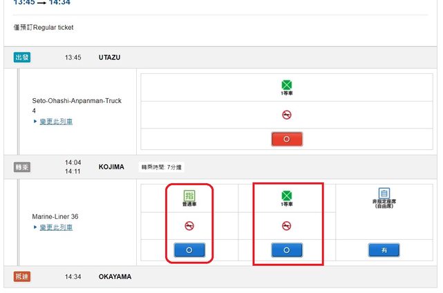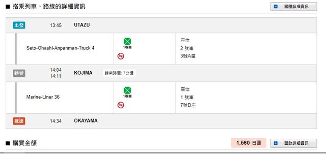 : 但是在JR西日本官網訂票發現無法直接從宇多津站買到岡山站