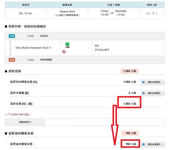 標題Re: [問題] JR 西日本特急券分段購票費用計算?