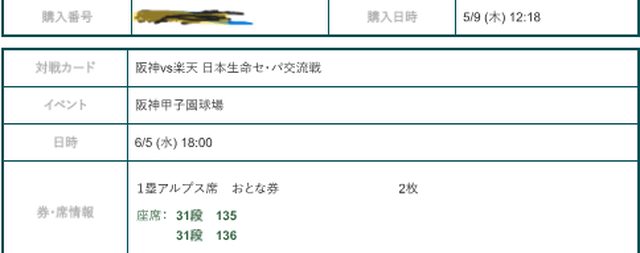1. 讓售品項:阪神vs樂天 內野一壘側阿爾卑斯席2張