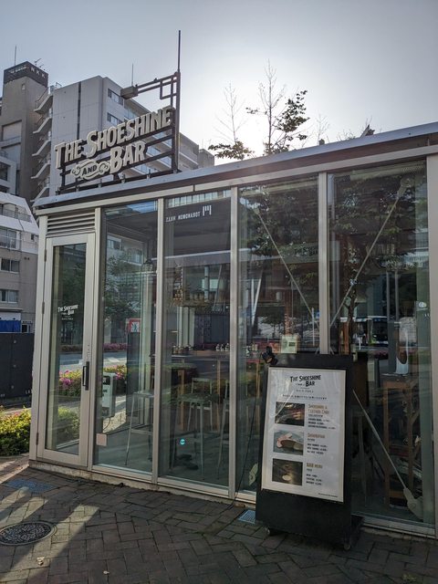 https://i.imgur.com/e5lB5ar.jpg 西新橋二丁目的人行道上有很特別的擦鞋酒吧。