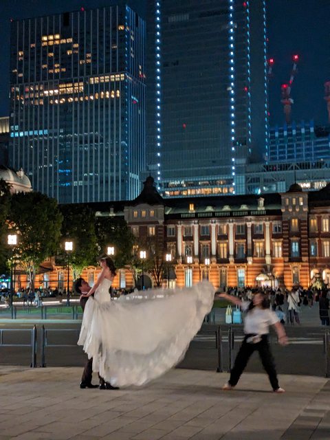 在車站前的廣場,初次看到「傳說中在東京車站前拍婚紗的新人」,共有四對,