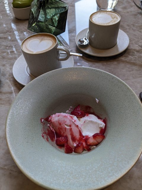 櫻花奶油拿鐵就...有點後悔,奶油很甜而且沒什麼櫻花味。(櫻花是能有什麼味道?)