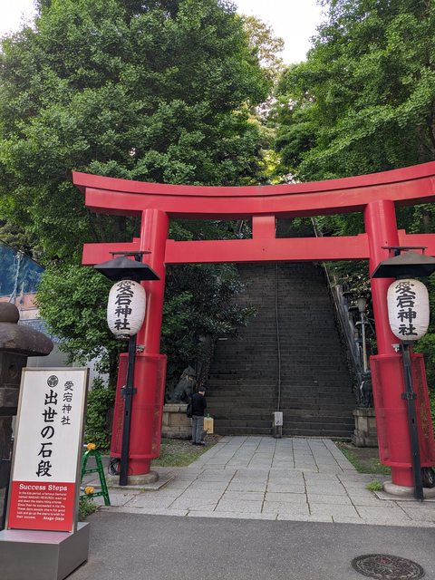 午餐後與朋友走去公車站。路上經過愛宕神社,朋友說這裡有個「出世階梯」,