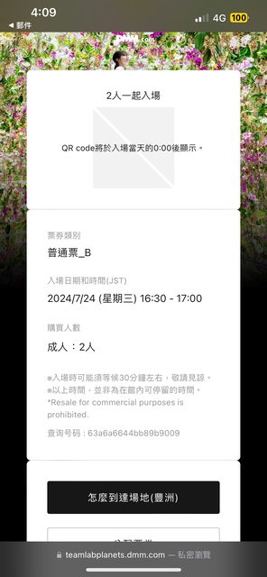 此票券為teamLab官網購入,原訂入場時間為2024/7/24(三)16:30-17:00,但入場時間跟入