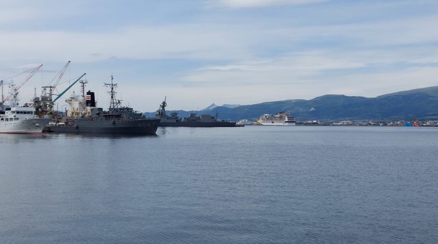 窗外的景色,郵輪已經駛離了 06:33
