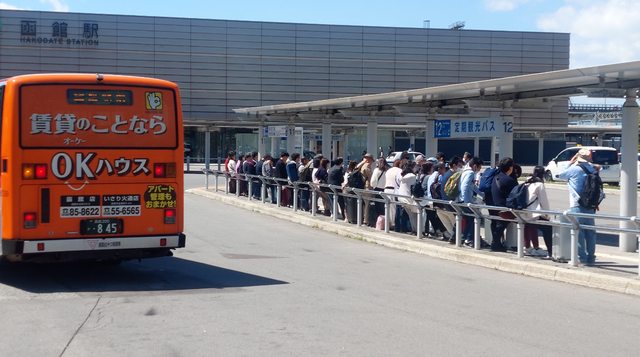 前方這排隊人潮就是要在 11 號月台搭帝產巴士回函館機場的,
