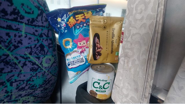 就機上餐附的;飲料就統聯那邊等車時投幣買的,我錢包有放