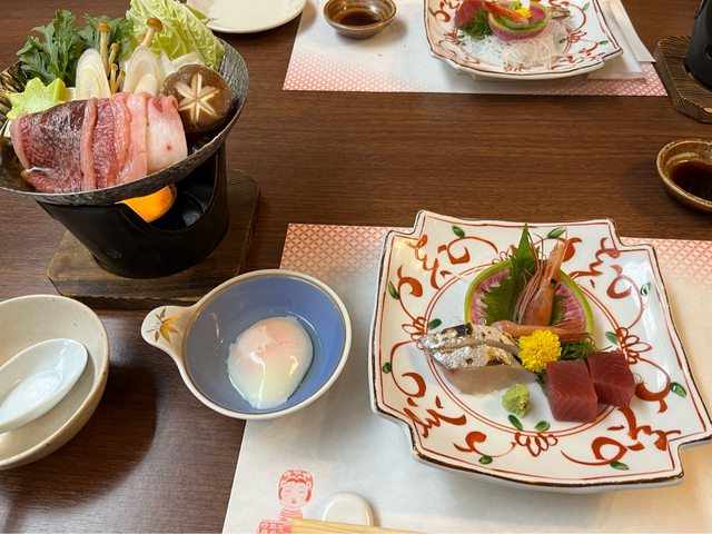 回飯店休息片刻,19:30用餐。與昨天的餐點不同,主食選了牛肉壽喜燒火鍋及海鮮火鍋 。