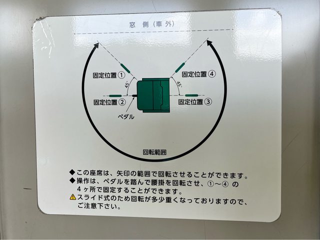 這台列車的單人座位,除了可以前後轉之外,還可以轉45度固定,應該是方便欣賞風景吧 (不過好像沒人轉這個角度)。