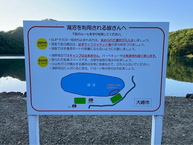 走了大約35分鐘,終於看見潟沼。潟沼是1200年前因火山爆發形成的火口湖,湖水為強酸 性(pH2.4),沒有魚類棲息。
