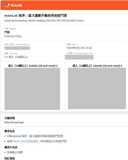 6/17 19:30 teamLab 無界:森大廈數字藝術美術館門票KLOOL兌換券2張