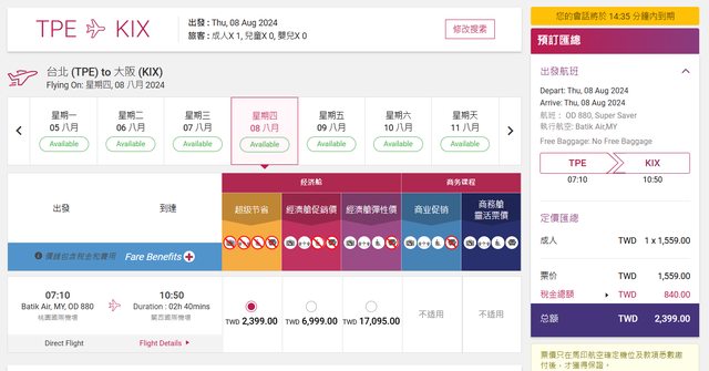 → daccdacc : 8月去程特價票已經賣得差不多了 06/15 18:52