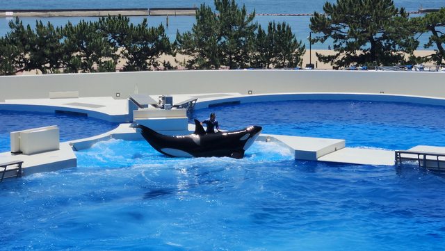 先說大家想看的,由於須磨海洋世界(似乎是鴨川海洋世界來開的)六月初剛開幕,整館可以說90%以上都日本人在逛。表演項目有館中明星,虎鯨、海豚們和企鵝等表演節目一些,另外還有關於從河川到海洋的水文環境介紹,從山中河川直至大洋區配合著舒服的背景音樂,讓遊覽過程非常放鬆,個人覺得是絕佳的親子旅遊新據點(虎鯨表演比我想像中還久)